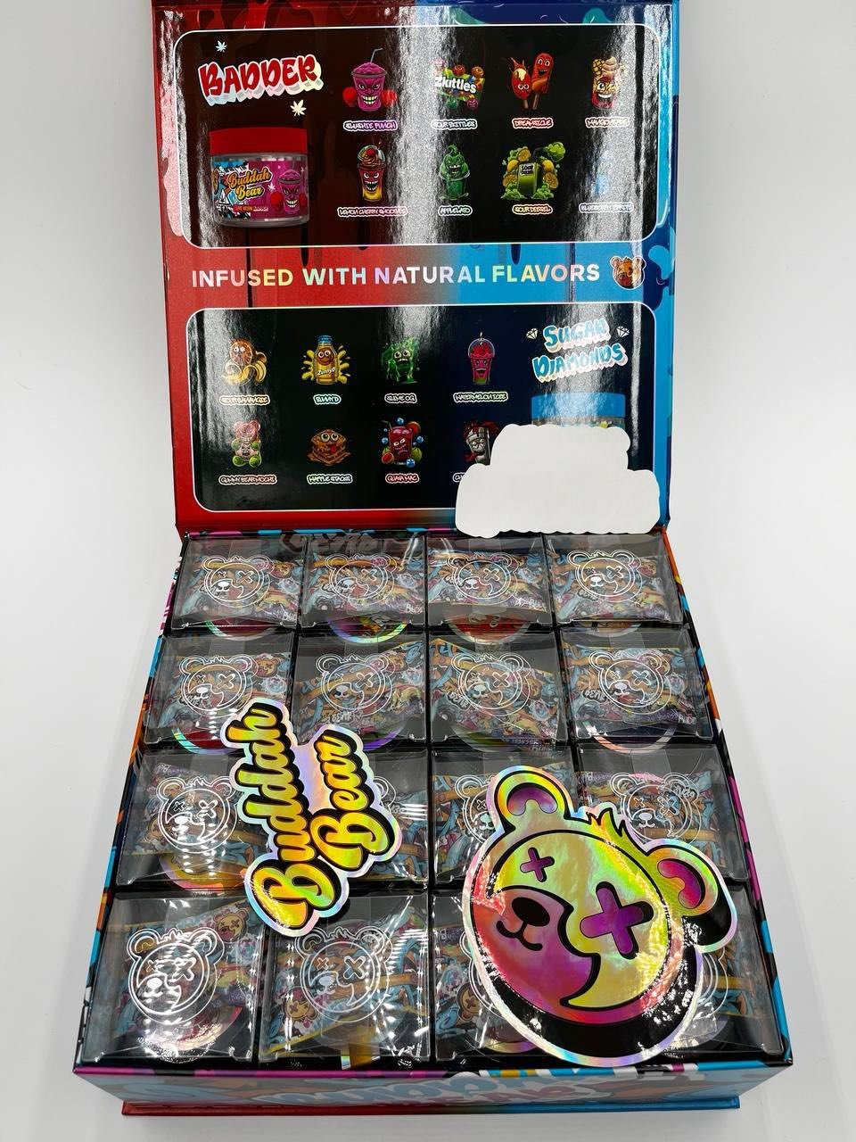 | FLAVORS | SLUSHIE PUNCH – BADDER, SOUR SKITTLES – BADDER, APPLELATO – BADDER, SOUR DIESEL – BADDER, DREAMSICLE – BADDER, LEMON CHERRY SMOOTHIES (BADDER), MANGO (BADDER), BLUEBERRY R (BADDER), WATERMELON ICEE – SUGAR DIAMONDS, SLIME OG – SUGAR DIAMONDS, GUMMY BEAR MOCHI – SUGAR DIAMONDS, GUAVA MAC (SUGAR DIAMONDS), WAFFLE STACKS (SUGAR DIAMONDS), SOUR BANANAG (SUGAR DIAMONDS), RUNNY D (SUGAR DIAMONDS), 4OZ JARS (MIXED FLAVORS) – QP, 8OZ JARS (MIXED FLAVORS) – HP, 16OZ JARS (MIXED FLAVORS) – 1LBS |