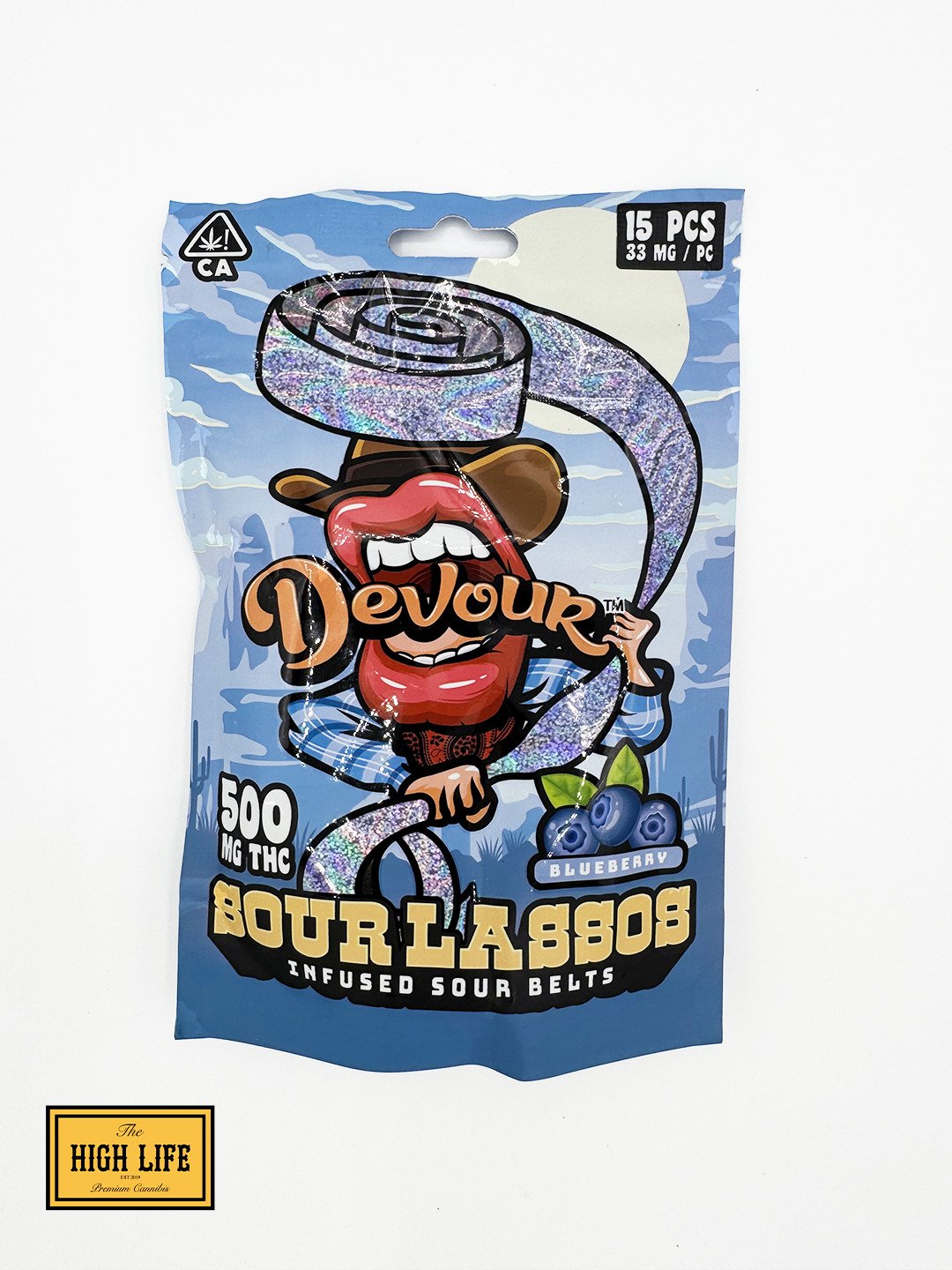 Each package of Devour Sour Lassos contains 500mg of THC. Depending on how the belts are cut or portioned, users can dose themselves appropriately.