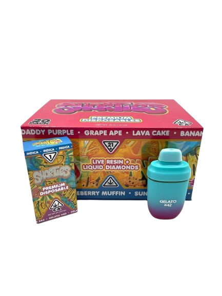 | Flavors | Slurricane, Skywalker OG, Wedding Cake, Sundae Driver, Lemon Cherry Gelato, Bubble Gum, Banana Punch, Apple Fritters, Blueberry Muffins, Runtz, Oreoz, Lava Cake, Zoap, Grand Daddy purple, Girl Scout Cookies, Tropicana Cookies, Gelato #42, Biscotti, Zkittles, 10pk (Mixed Flavors), 25pk (Mixed Flavors), 50pk (Mixed Flavors), 100pk (Mixed Flavors) |